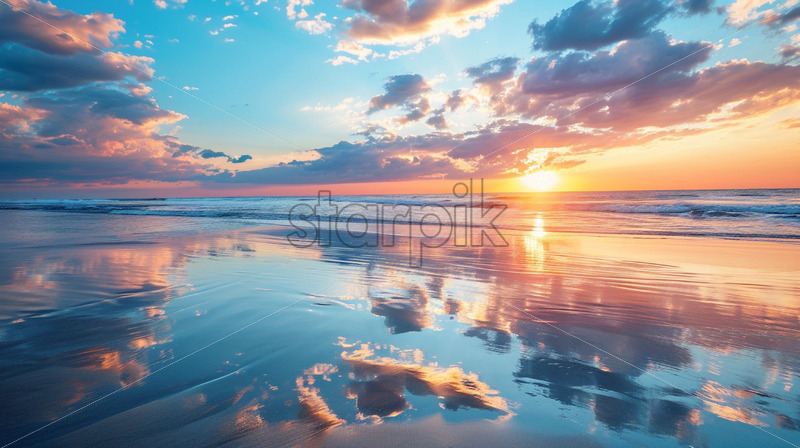 Home » Shop » Uncategorised » Epic beach background with sky reflections, romantic relaxing beauty nature