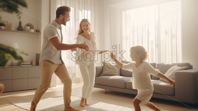 A loving family in a warm kitchen joyfully bakes homemade cookies together, faces beaming with laughter and anticipation.