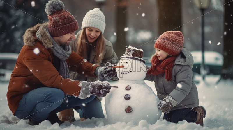 Dad and kids winter time, spending time together outdoors, walking in a forest