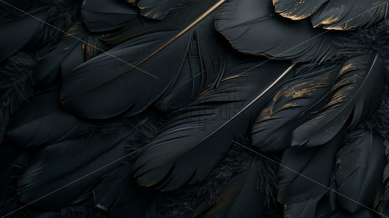 Feathers, black and gold theme, view from above