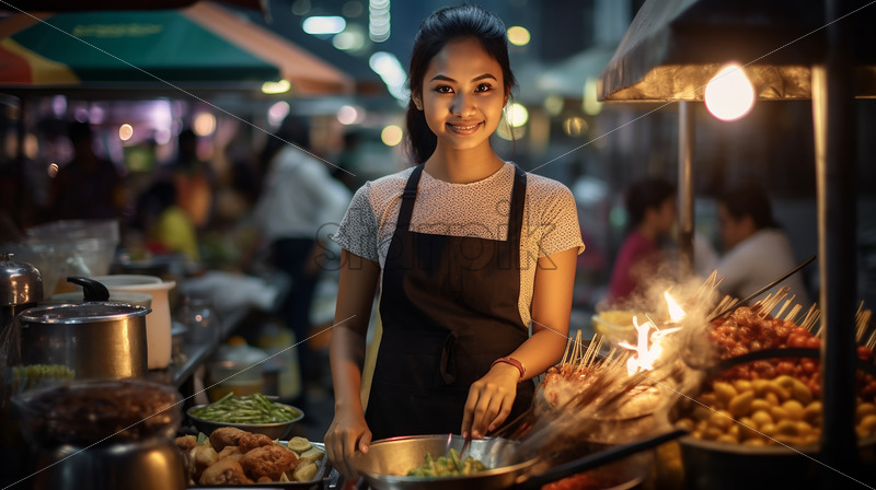 Home » Shop » Uncategorised » Female Thai’s Vendor in the street of Bangkok look so adorable while preparing the meat on stick and vegetable on stick