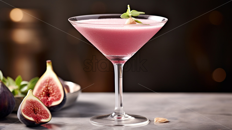 Fig fruits gin tonic or martini cocktail close ups