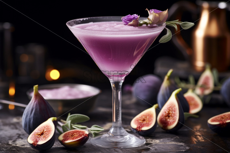 Home » Shop » AI Illustration » Fig fruits gin tonic or martini cocktails close up