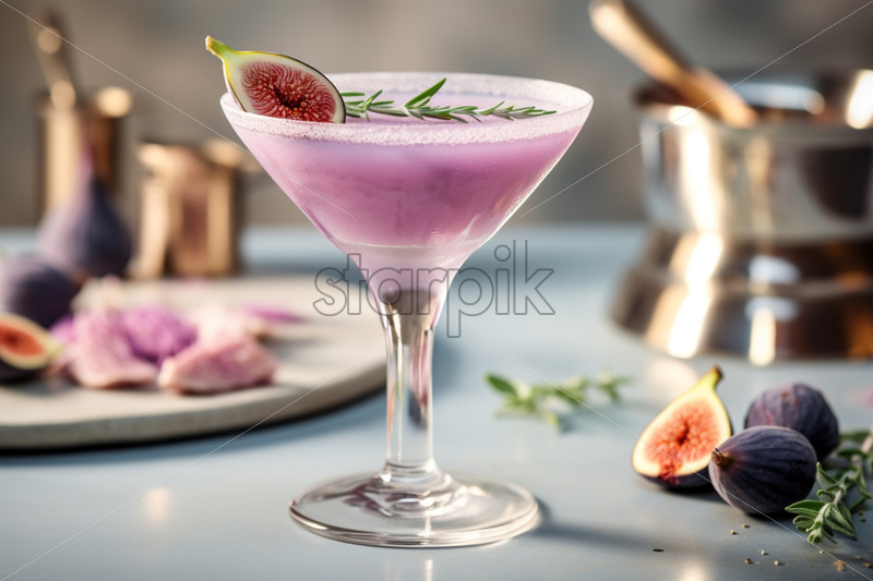 Home » Shop » AI Illustration » Fig fruits gin tonic or martini cocktails close up