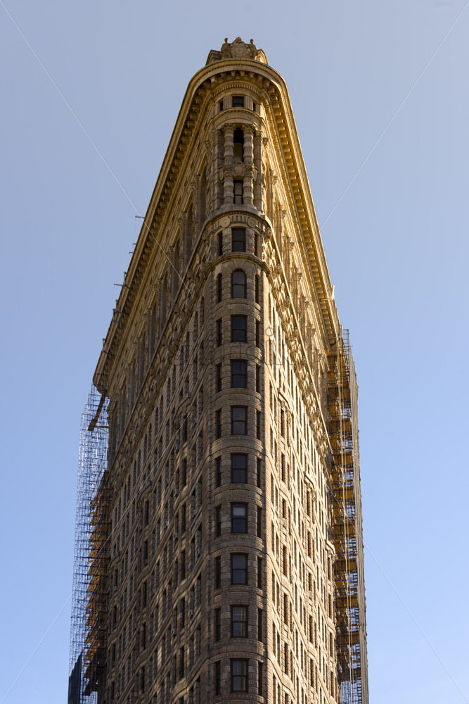 NEW YORK, USA – SEPTEMBER, 2019: View of FT building facade in downtown from a view point. Chrysler Building on the background