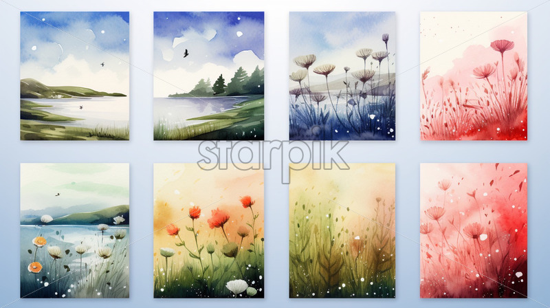 Floral wreath cards watercolour, wedding ceremony, invitation background