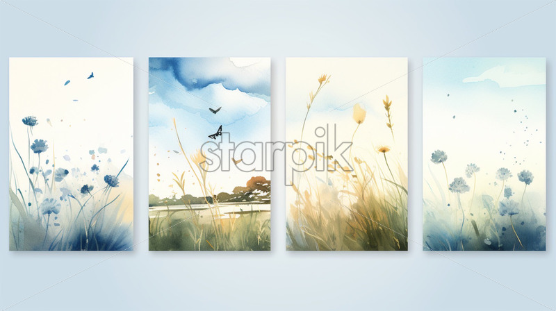 Floral wreath cards watercolour, wedding ceremony, invitation background