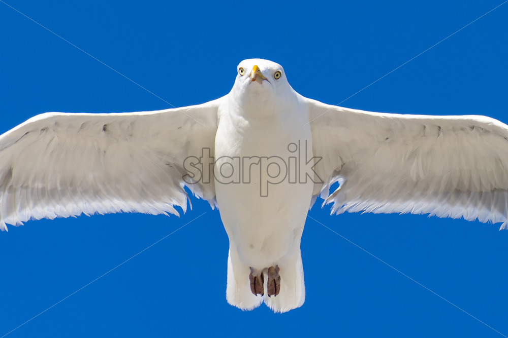 Close up of a seagull gliding through the air against a clear blue sky Royalty Free Stock Video Footage