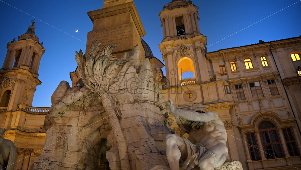 Fountain of the Four Rivers located in Navona square. Rome city square at sunset. Italy Royalty Free Stock Video Footage