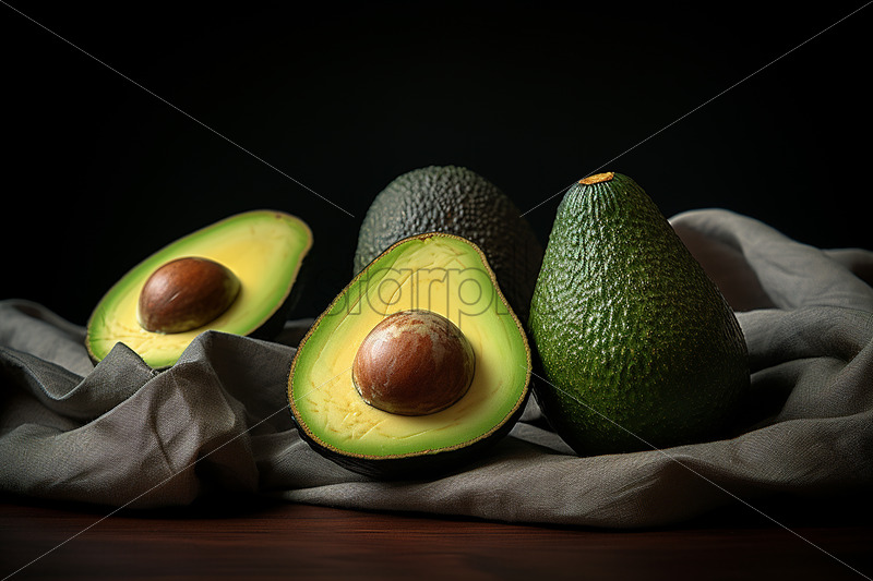 Macro Fresh Juicy half and whole of green avocado fruit background as pattern