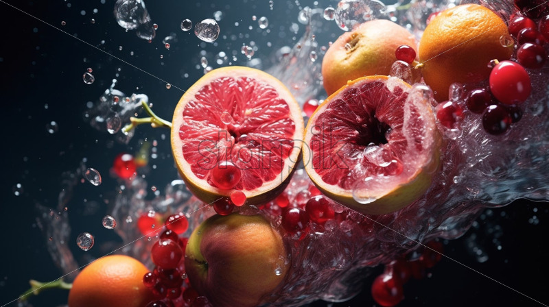 Fresh fruits with waterdrop. Vibrant colors