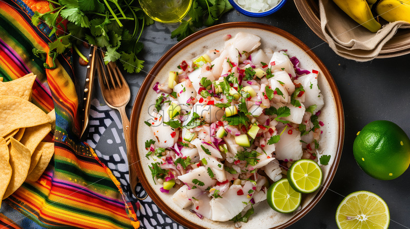 A mouthwatering photograph showcasing Peruvian Ceviche, a refreshing dish with marinated seafood and citrus flavors.