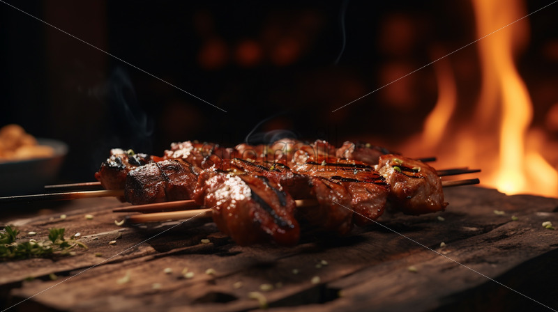 Close up of meats cooking on a grill alongside golden potatoes, asparagus, and garlic Royalty Free Stock Video Footage