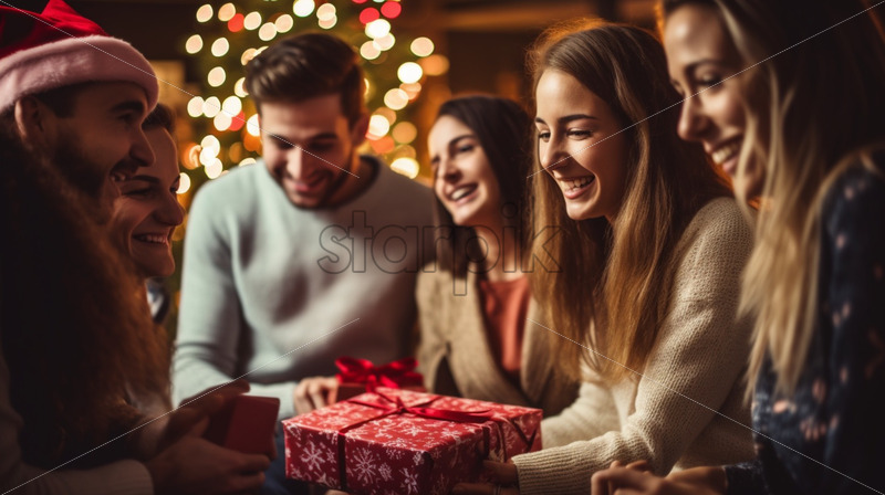 group of friends exchanging Eid gifts and taking photos Royalty Free Stock Video Footage
