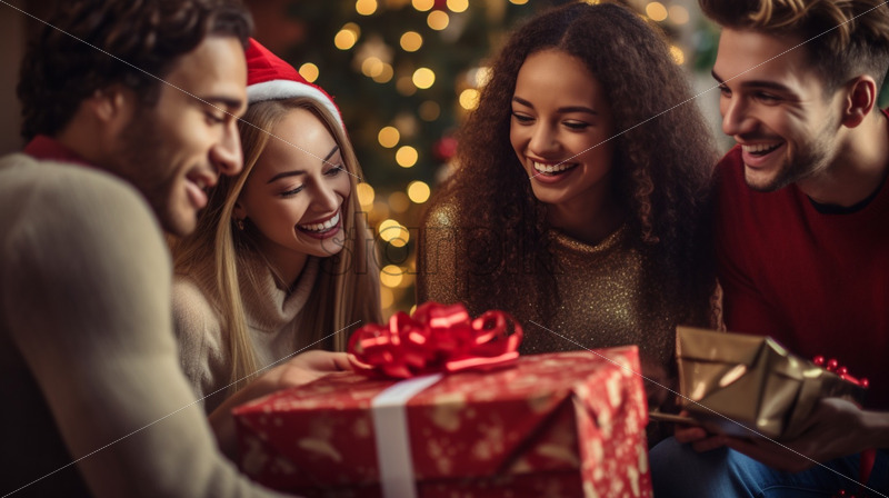 group of friends exchanging Eid gifts and taking photos Royalty Free Stock Video Footage