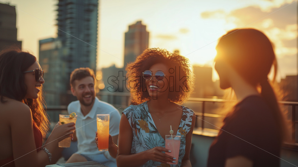 A group of friends drinking wine for a toast under a golden sunset on a luxurious yacht