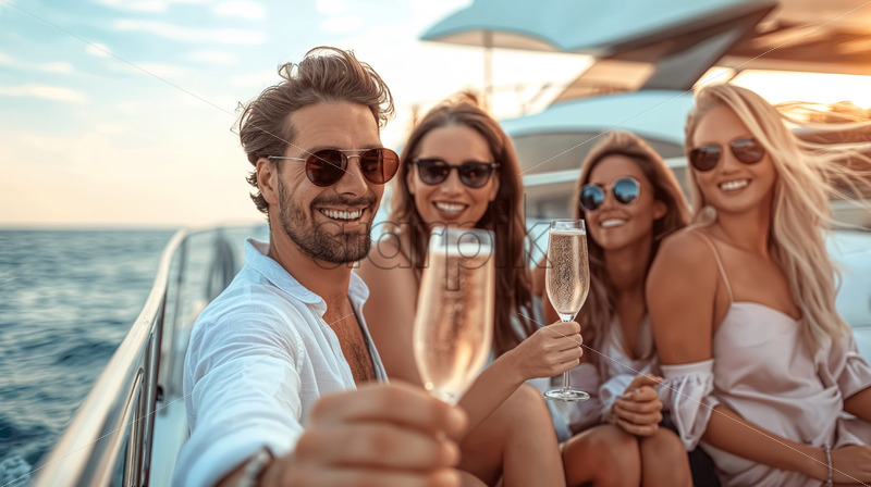friends drinking champagne on a luxury yacht