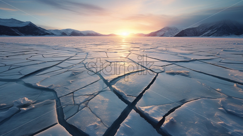 Frozen lake view of sunrise in the mountains