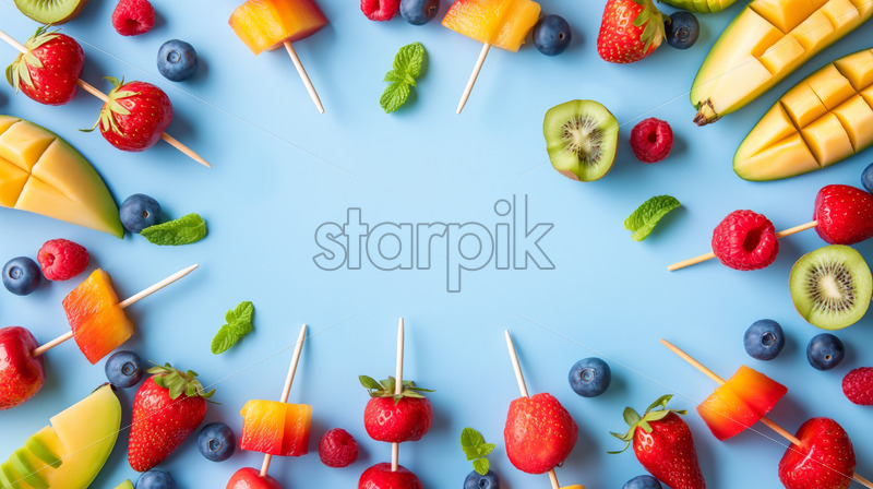 Home » Shop » AI Illustration » Fruits skewers summer poster