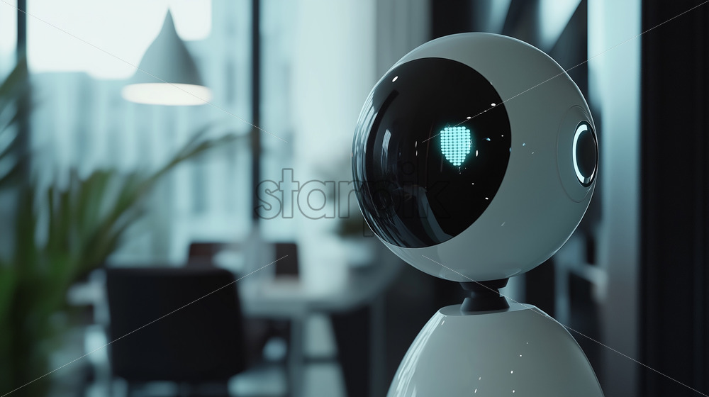 In a cafe, a robot prototype with human features efficiently serves customers and cleaning the table