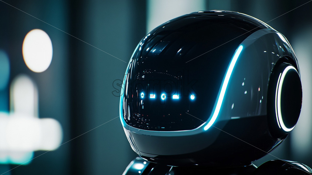 In a cafe, a robot prototype with human features efficiently serves customers and cleaning the table