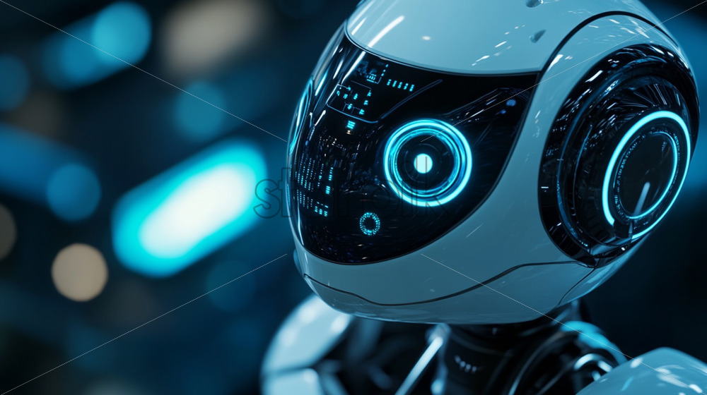 A striking robot prototype, featuring remarkably human-like attributes in the warehouse