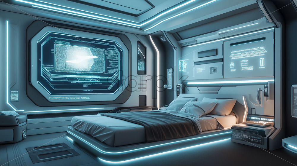 A woman relaxing on a sleek sofa, scrolling through a holographic social media interface