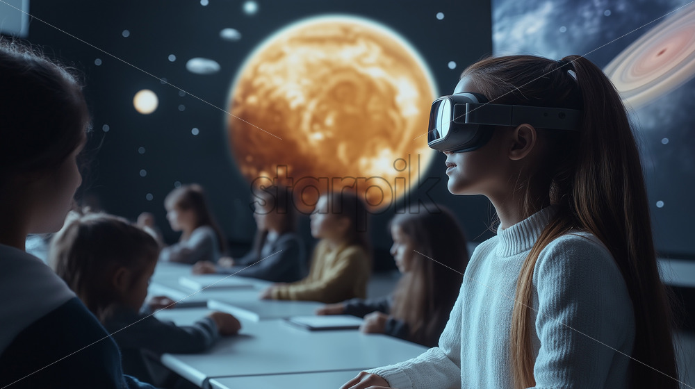 classroom of students in a quantum metaverse environment