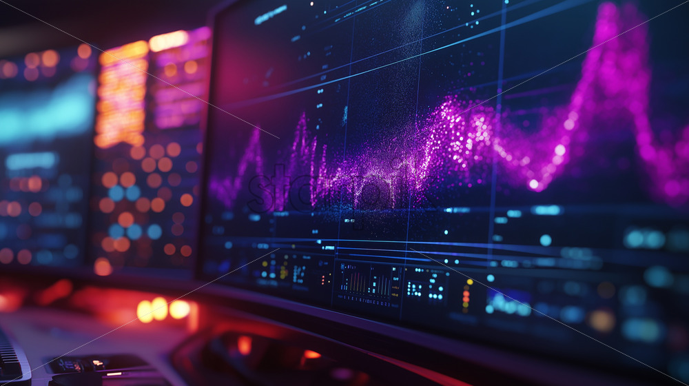 scientist sitting in front of holographic projections, analyzing an encoded space signal