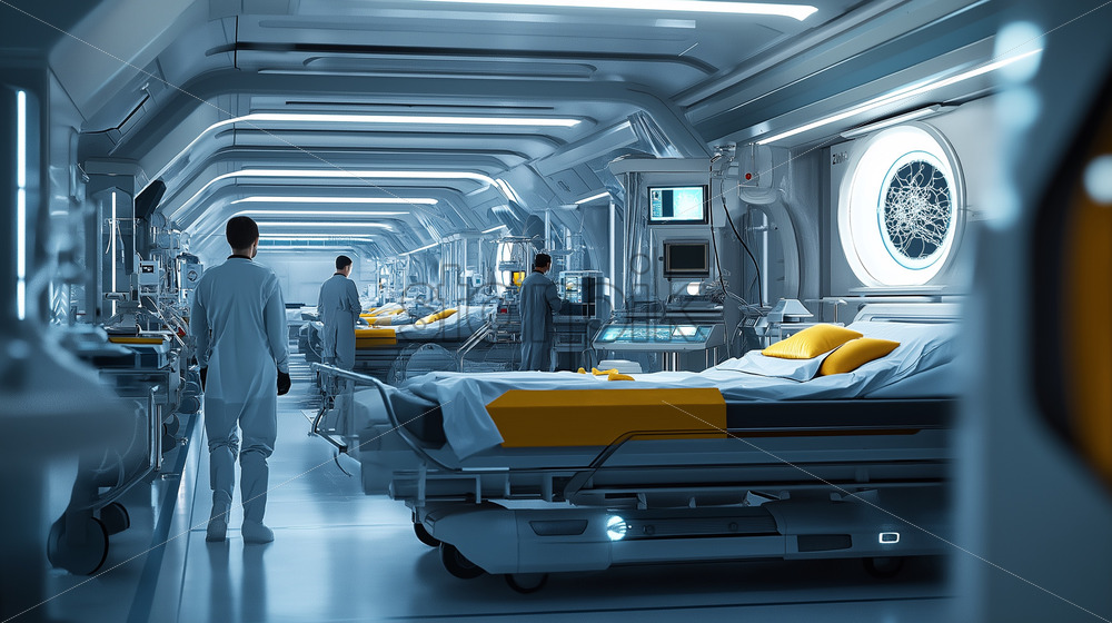 Home » Shop » AI Illustration » futuristic hospital scene where scientists are using advanced technologies