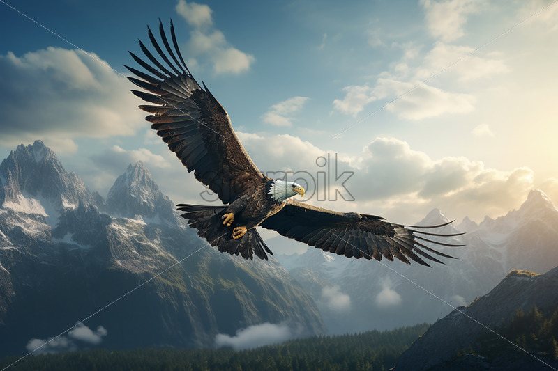 Generative AI a bald eagle flying over a prairie