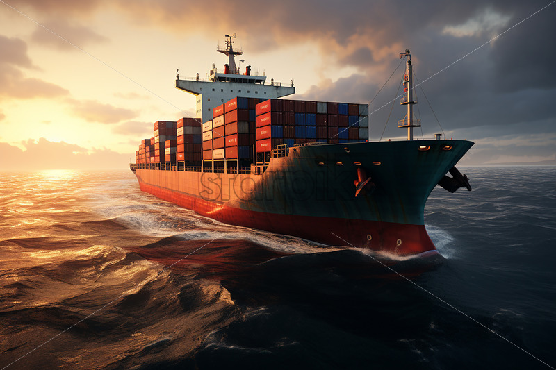 Cargo boat parked in industrial area of downtown city. San Diego, California