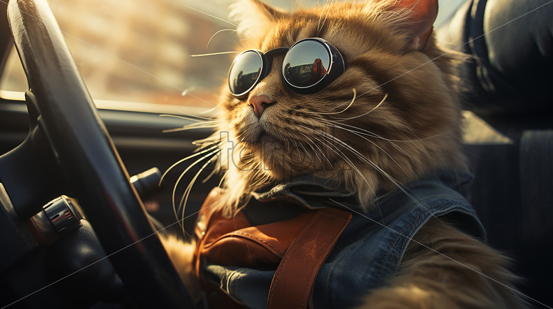 Generative AI a cat driving a car