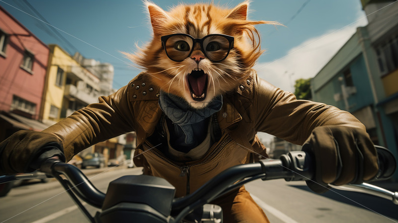 Home » Shop » AI Illustration » Generative AI a cat driving a motorcycle in the city