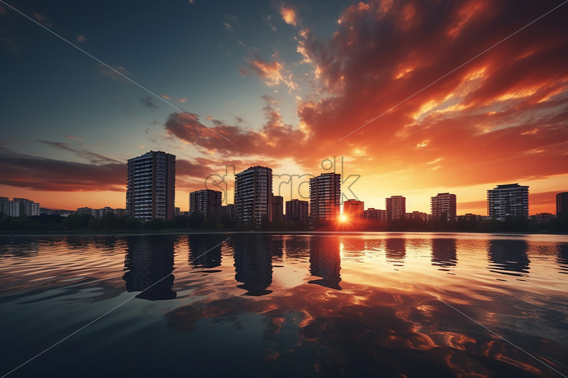 Home » Shop » Uncategorised » Generative AI a city located on the shore of a lake and the sunset in the background