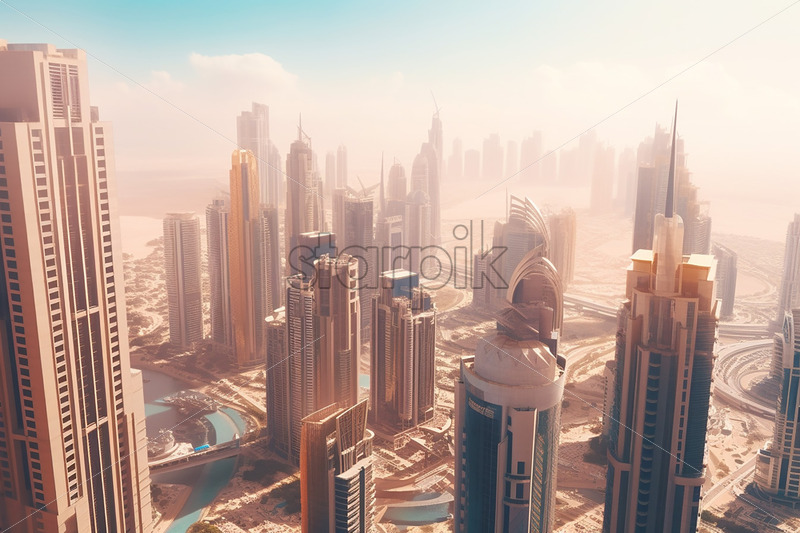 NEW YORK, USA, SEPTEMBER 19: Wide shot of the World Trade Center station in New York with lots of high modern and aged buildings near it, the sky behind the main scene is blue and clear