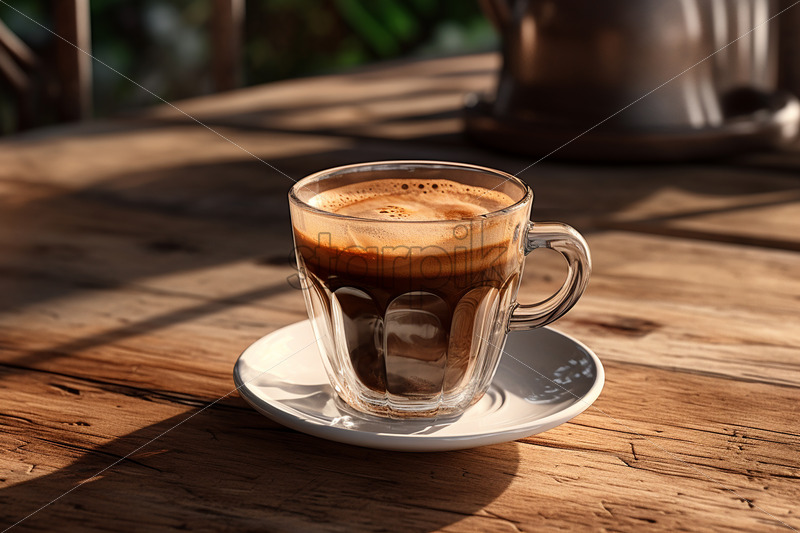 Generative AI a cup of natural coffee on a wooden table