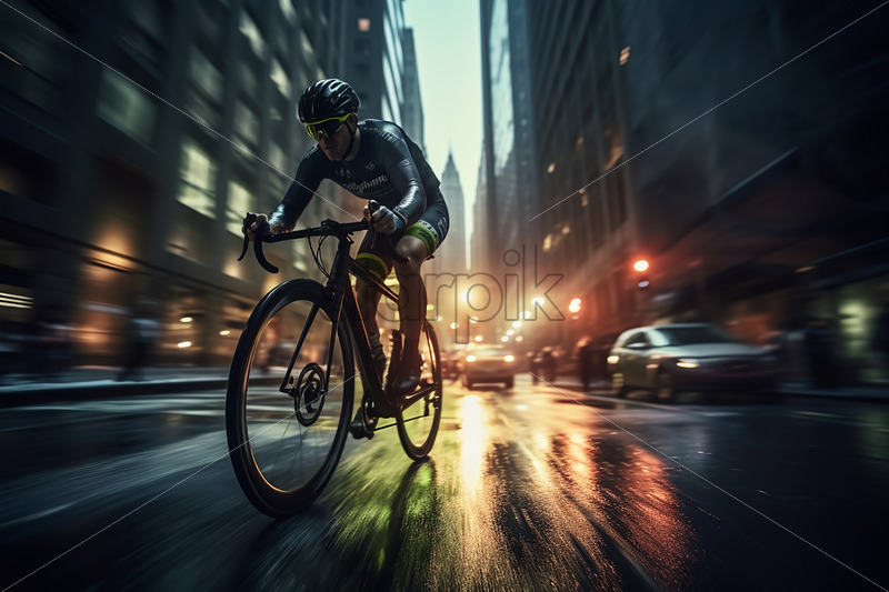 Generative AI a cyclist speeding down a street, long exposure photo