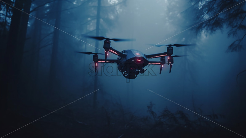Home » Shop » AI Illustration » Generative AI a drone performs a reconnaissance flight in the forest