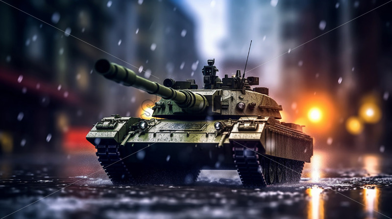 Generative AI a tank launches a missile from the turret, smoke, fire