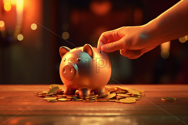 Home » Shop » AI Illustration » Generative AI a hand that puts money in the piggy bank