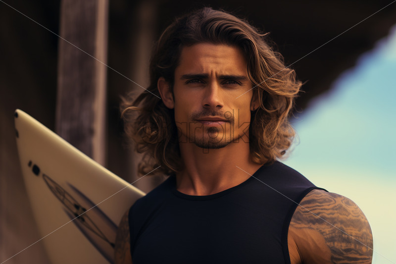A woman running on the beach with pier and walking, resting people on the background in San Diego, USA