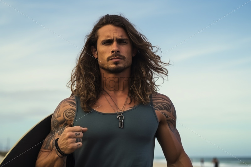 A woman running on the beach with pier and walking, resting people on the background in San Diego, USA