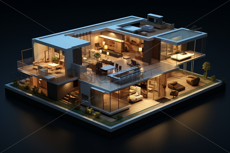 NICOSIA, CYPRUS – FEBRUARY 18, 2020: Kitchen in a house with illumination made in modern style