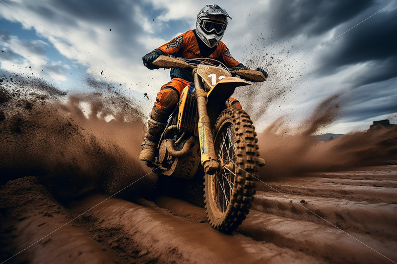CHISINAU, MOLDOVA – SEPTEMBER, 2022: View of a jumping motorcyclist at a motocross race, mud track, rally motorcycle, sky on the background