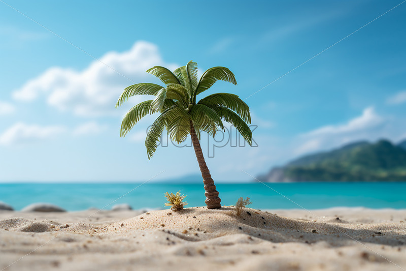 Generative AI a palm tree on the edge of a sea, and a lot of sand