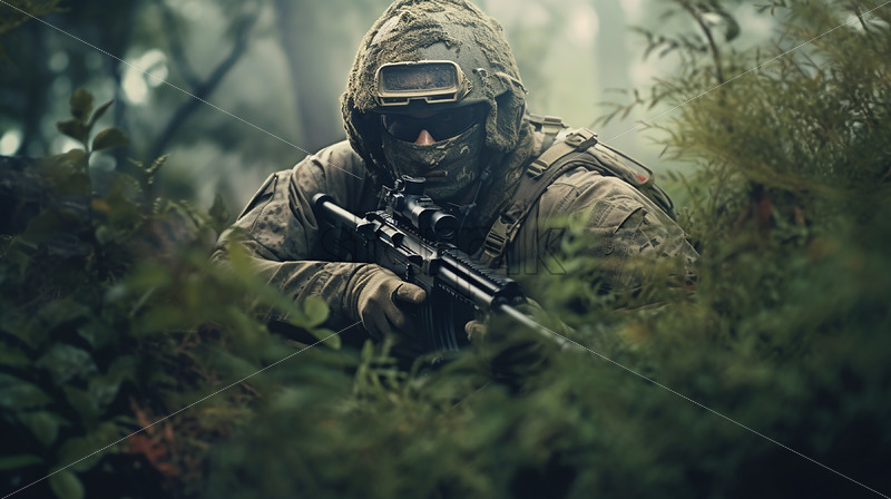 Generative AI a scout analyzes the positions of the opponents being hidden in the bushes