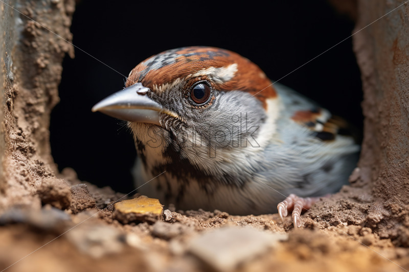 Home » Shop » AI Illustration » Generative AI a sparrow poking its head out of its burrow