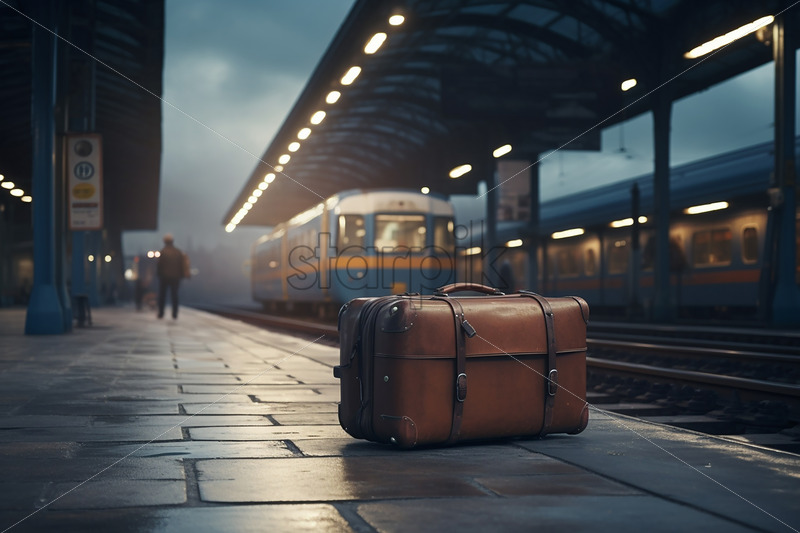 Generative AI a suitcase is on a train platform