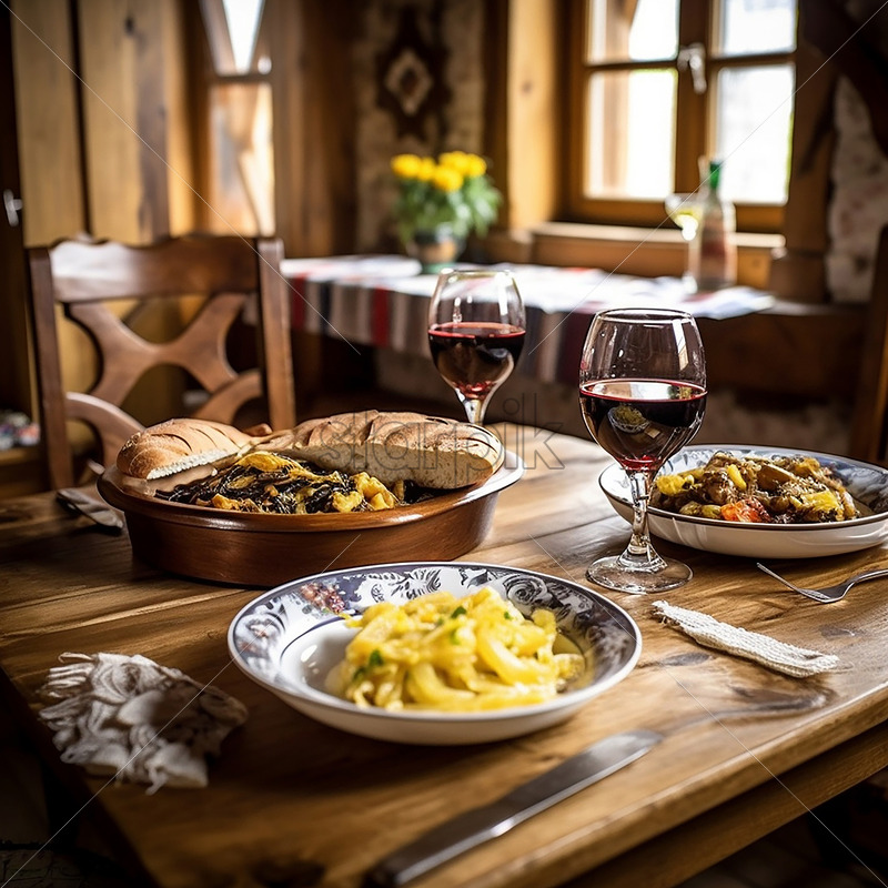 Generative AI a table full of traditional dishes from the Republic of Moldova